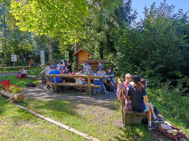 Über Brücken und an rauschenden Wasserfällen vorbei erreichten wir Emmetten, wo wir unser wohlverdientes Picknick oder eine Wurst vom Grill genossen. Nach Spielen und Sonnen geniessen ging es zufrieden und voller schöner Eindrücke zurück.
