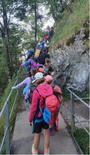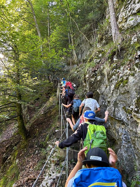 Aller guten Dinge sind drei: Nach zwei wetterbedingten Verschiebungen konnte unsere Herbstwanderung am Freitag, 19.09. endlich stattfinden. Bei strahlendem Sonnenschein machte sich die gesamte MS 2 mit rund 70 Kindern auf den Weg durch die eindrucksvolle Risletenschlucht.