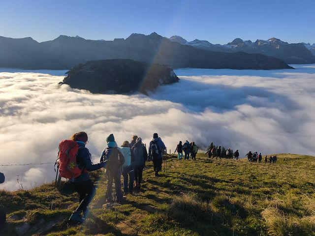 Mitten in der Nacht starteten die Jugendlichen der ORS zu ihrer Herbstwanderung, mit dem Ziel, pünktlich zum Sonnenaufgang auf dem Buochserhorn zu stehen. Das Naturspektakel über dem herrlichen Nebelmeer musste sich allerdings erst verdient werden. In verschiedenen Tempogruppen erreichten schliesslich alle den Gipfel und konnten das eindrucksvolle Erlebnis geniessen.