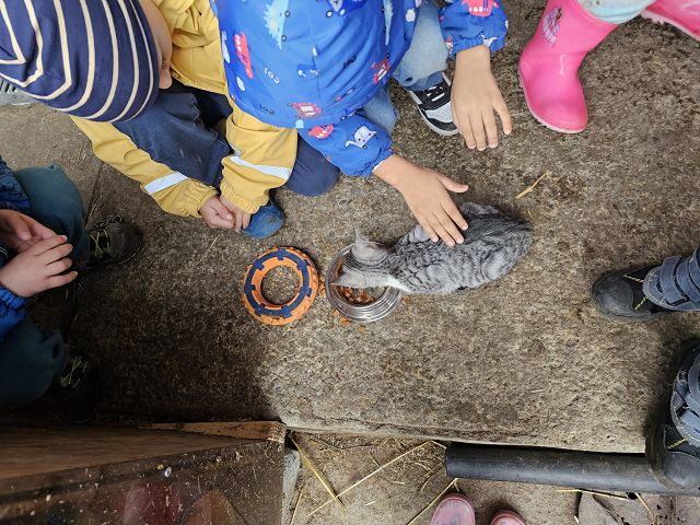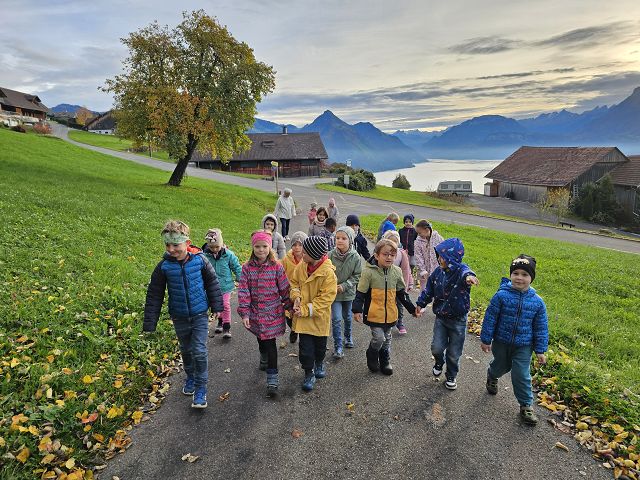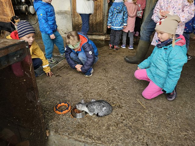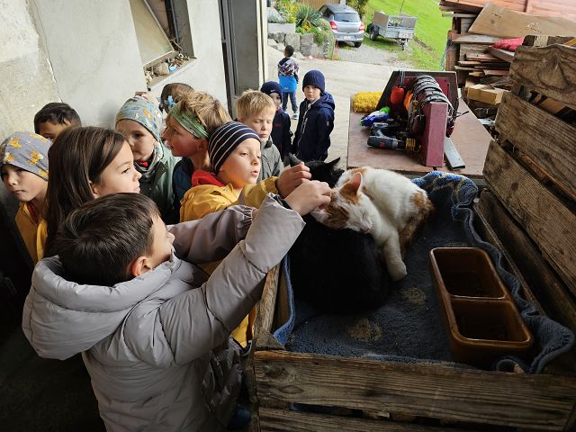 Unter der Reiseleitung von Melanie Christen nutzte die Kindergartenklasse Dorf a den herrlichen Herbsttag für eine kleine Wanderung ins Etschenried. Dort durften die Kinder, passend zum aktuellen Thema, Melanies Katzen besuchen. Besonders die drei kleinen Katzenbabys waren unglaublich süss. Die Tiere wurden ausgiebig gestreichelt und mit Futter verwöhnt. Zum Schluss erhielten die Kinder von Melanies Dädi noch frischen Apfelsaft und konnten gestärkt den Rückweg in den Kindergarten antreten.