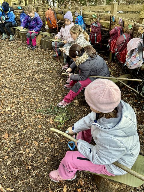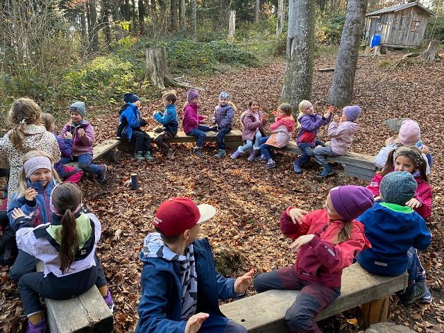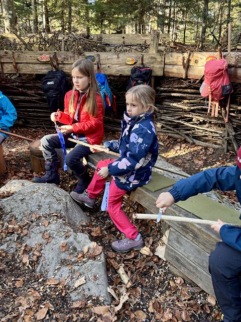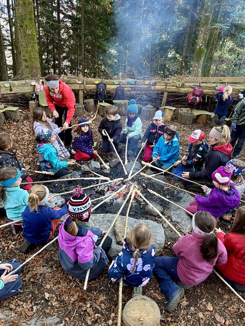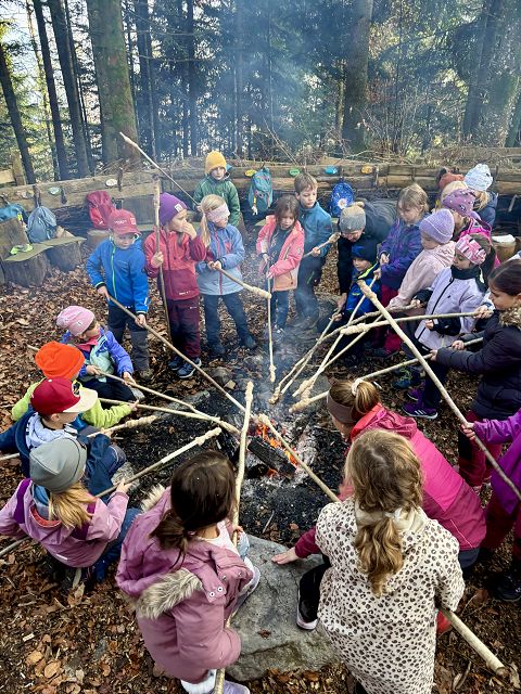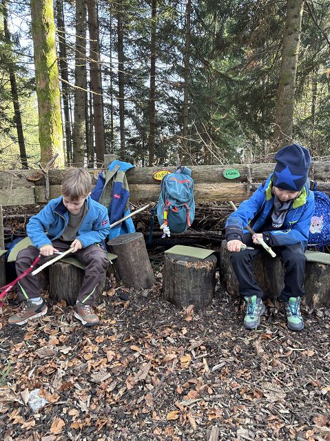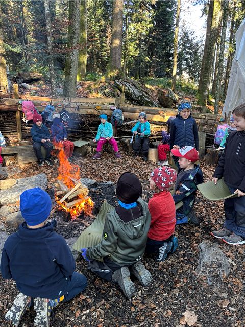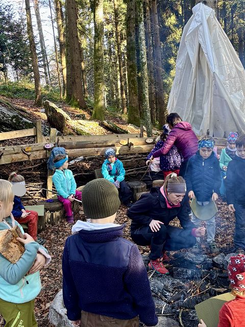 Es war schön zu sehen, wie alle einander halfen, gemeinsam lachten und die Zeit im Wald genossen. Nach dem feinen Znüni blieb noch ein bisschen Gelegenheit zum Spielen, Entdecken und Staunen.