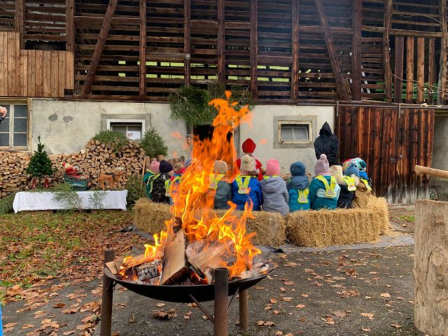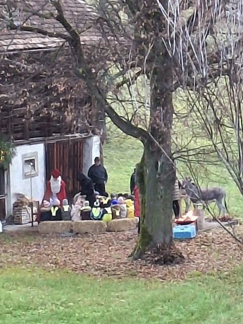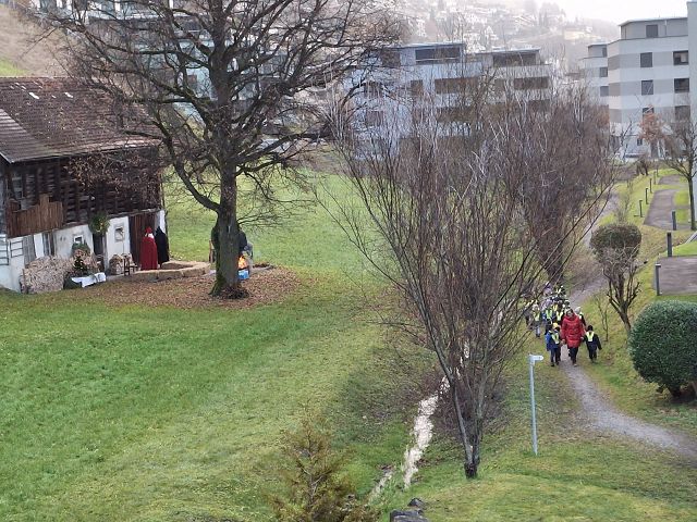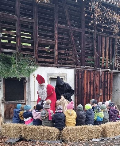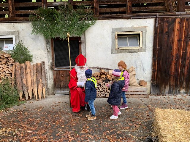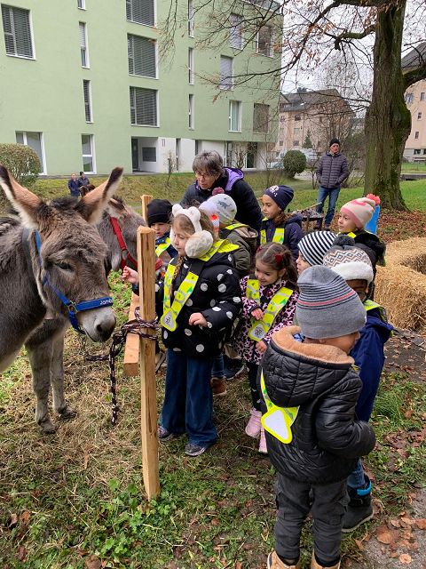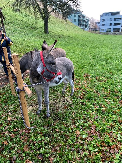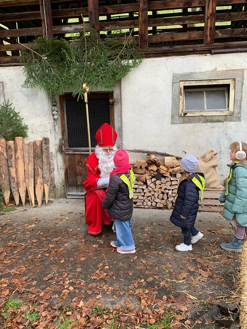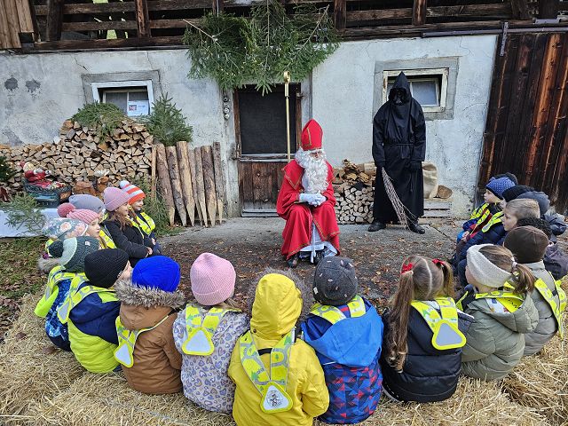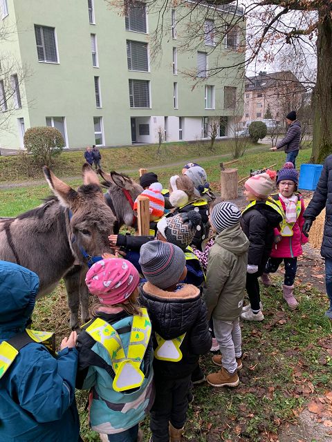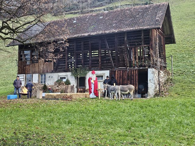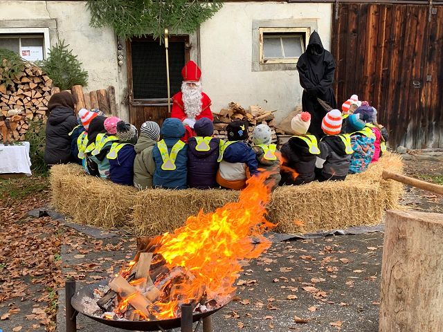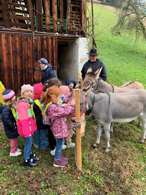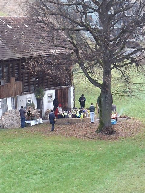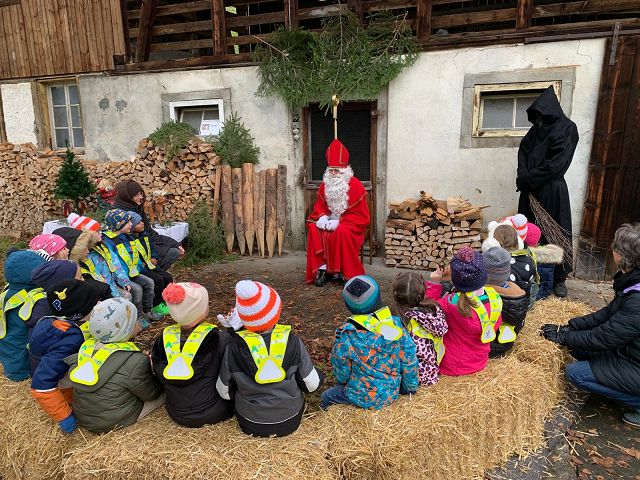 In der ersten Adventswoche besuchten alle Klassen den Samichlaus mit seinem Schmutzli und den Eseln beim Gade am Bach. Auf den Strohballen sitzend lauschten die Kindergartenkinder aufgeregt den Worten des Samichlauses. Natürlich sagten sie am Schluss ihre gelernten Sprüchlis auf und bekamen als Dank dafür einen kleinen Gritibänz.