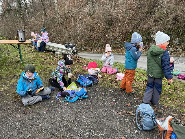 Wir sangen Lieder und sagten unsere Samichlausverse auf. Danach durften wir warmen Punsch trinken und leckere Grittibänze essen.