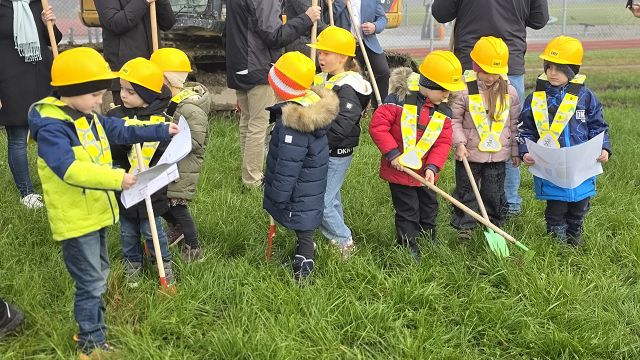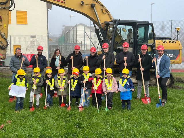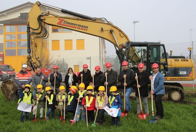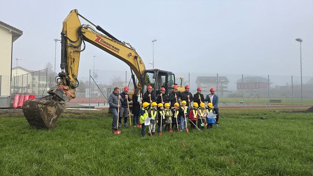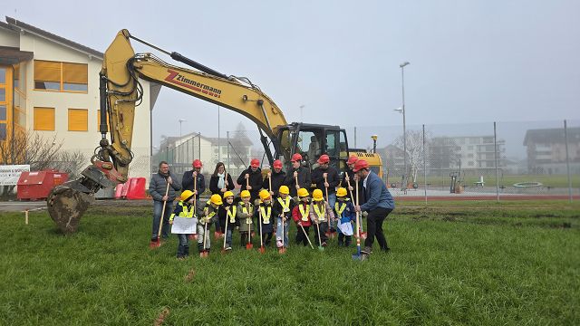 Am 9. Dezember fand gemeinsam mit den Kindergartenkindern der feierliche Spatenstich statt. Nach einer kurzen Ansprache von Gemeindepräsident Mario Röthlisberger und Gemeinderat Martin Zimmermann wurde tatkräftig zur Schaufel gegriffen und der erste Stich in den Boden gesetzt. Seither laufen die Bauarbeiten auf Hochtouren, denn bereits bis zum Sommer sollen die neuen Räumlichkeiten von den Kindergartenklassen bezogen werden.